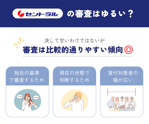 セントラルの審査基準は、大手消費者金融とは異なり、個々の状況を考慮する傾向があるようです。