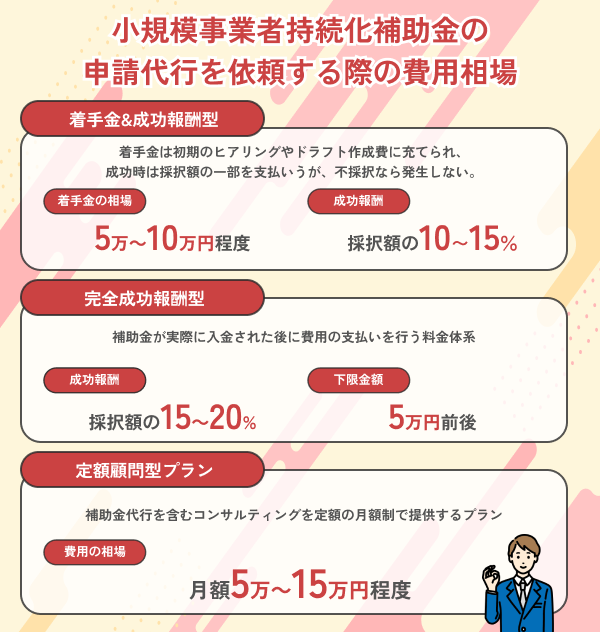 基本的に、補助金の申請代行費用やコンサルタントへの報酬は、小規模事業者持続化補助金の補助対象経費には含まれません。