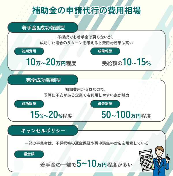 着手金と成功報酬、または完全成功報酬が一般的。計画書作成から採択後の報告までを支援します。